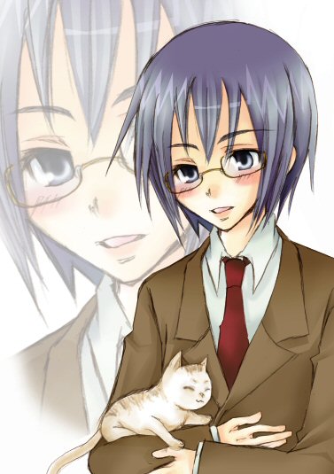 眼鏡男子=優等生で沈着冷静、でもネコを前にすると顔が緩むという勝手な偏見で描きました^^